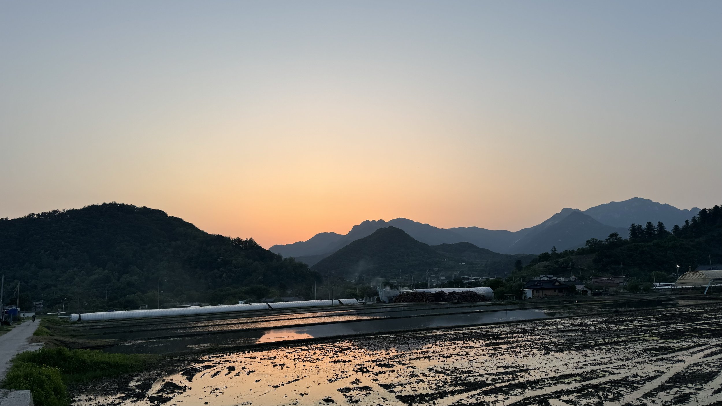 Here on the outskirts of Gapyeong, it is hard to be small, surrounded by nature with the sound and sight of water, fields, mountains, and the sky, not to mention the smell of cows nearby. I notice my heart expanding proportionately to what I can see and hear.